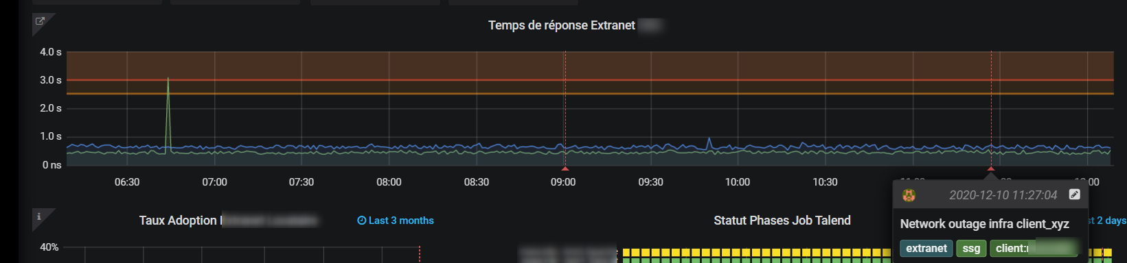 Cas exemple: Vous avez effectué un changement ou un problème est survenu sur l’infrastructure de monitoring. Il est souhaitable que vous ajoutiez une annotation pour qu’elle soit visible dans le dashboard du client et le votre afin de tracer cette action et pouvoir ainsi la corréler à un problème ou incident éventuel.